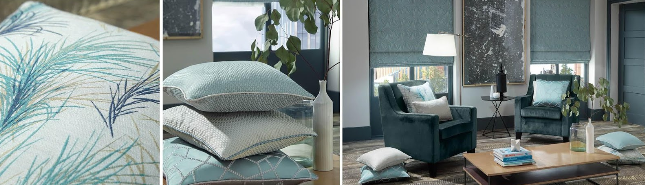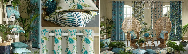 Як контраст можна прикрасити вікно бірюзовими полотнами, а для створення єдиного простору підібрати світлі пастельні або темні тони тієї ж гами.