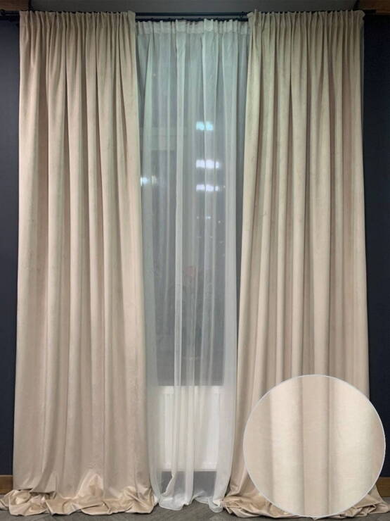 Штори у їх класичному виконанні: щільні портьєри бежевого кольору та легенький ніжний...