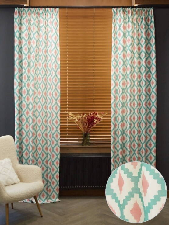 Колірна гама цього інтер’єру потребувала саме таких штор, в теплих відтінках бежевого...