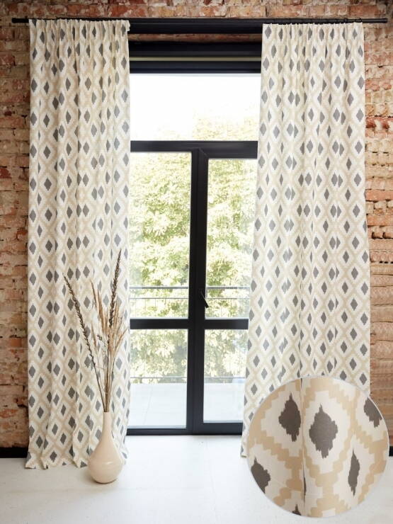 Колірна гама цього інтер’єру потребувала саме таких штор, в теплих відтінках бежевого...