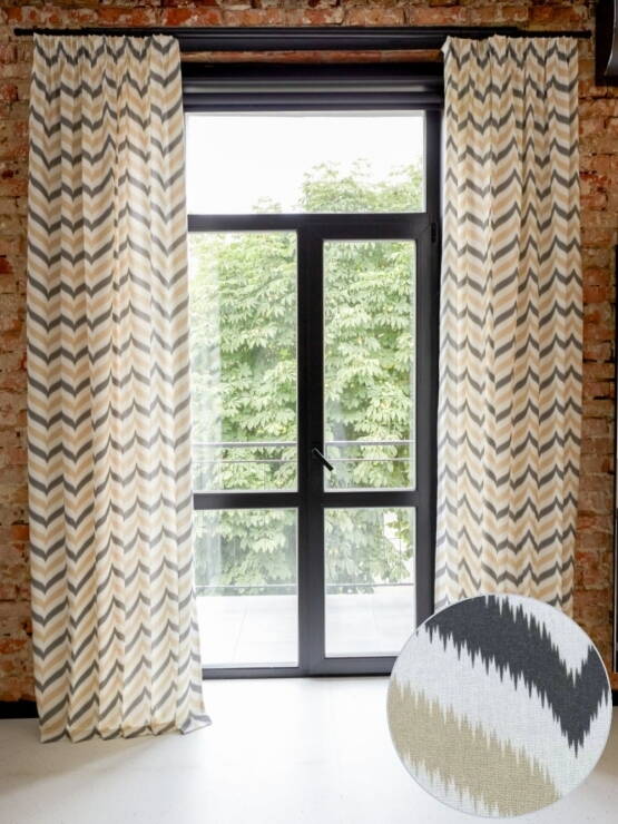 Колірна гама цього інтер’єру потребувала саме таких штор, в теплих відтінках бежевого...