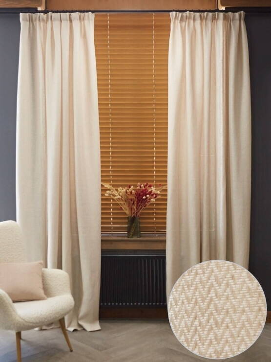 Колірна гама цього інтер’єру потребувала саме таких штор, в теплих відтінках бежевого...