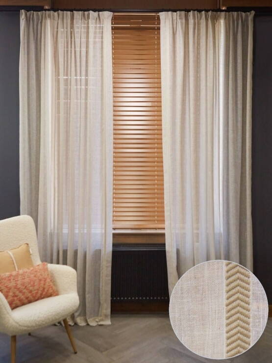 Колірна гама цього інтер’єру потребувала саме таких штор, в теплих відтінках бежевого...